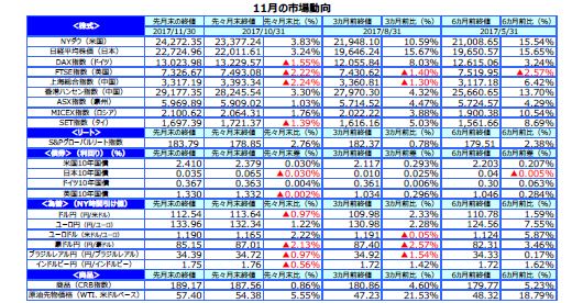 先月のマーケットの振り返り(2017年11月)【マンスリー】