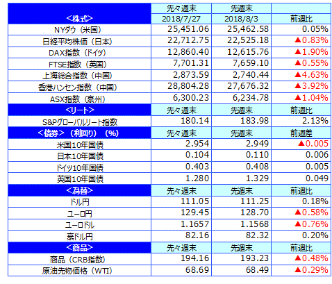 先週のマーケットの振り返り(2018/7/30-8/3)【ウィークリー】