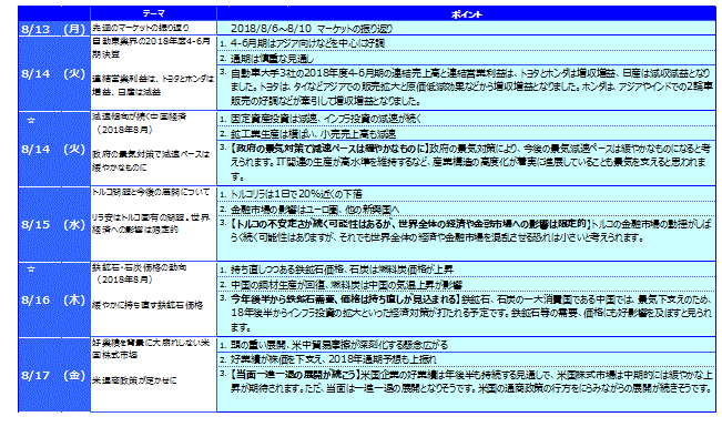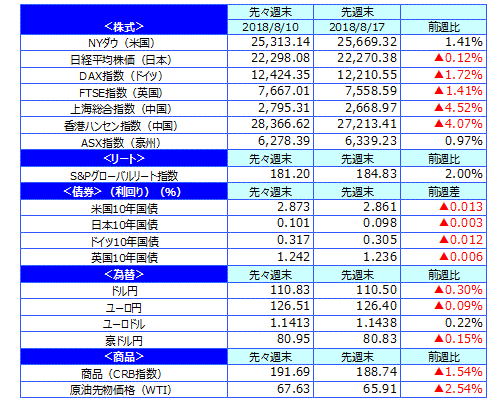 先週のマーケットの振り返り(2018/8/13-8/17)【ウィークリー】