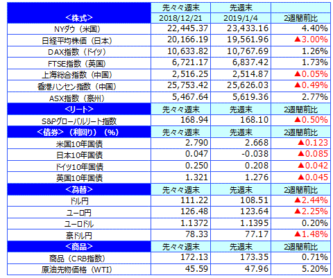 マーケットの振り返り(2018/12/24-2019/1/4)
