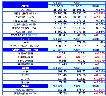 先週のマーケットの振り返り(2019/2/4-2/8)