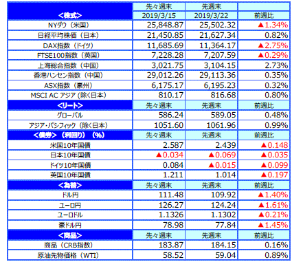 先週のマーケットの振り返り(2019/3/18-3/22)