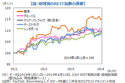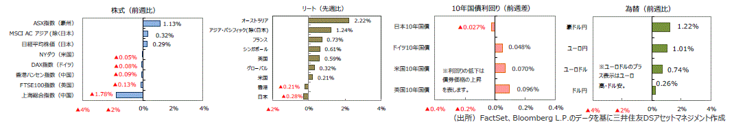 グローバル・リートは主要国の株価上昇を受けて週間では0.32%上昇しました。