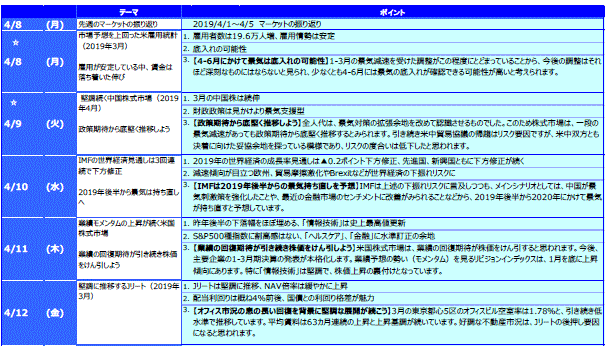 先週のマーケットの振り返り(2019/4/8-4/12)