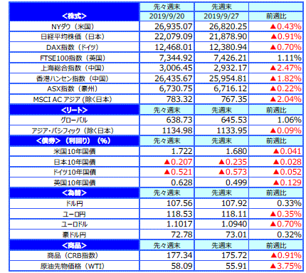 先週のマーケットの振り返り(2019/9/23-9/27)