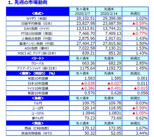 先週のマーケットの振り返り(2020/2/10-2/14)