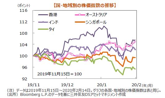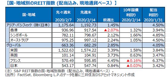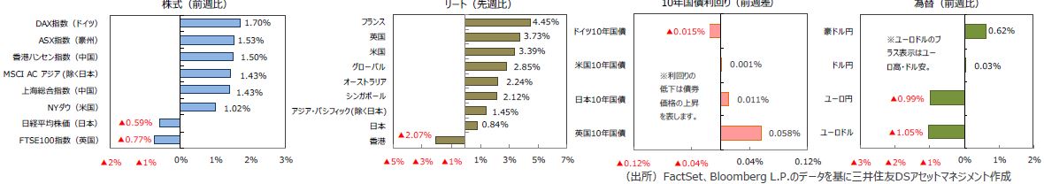 米国の10年国債利回りは、米利下げ観測がやや後退したことなどから一時上昇したものの、中国の新型肺炎の感染者数拡大などから低下し、前週比横ばいでした。日本は小幅上昇した一方、ドイツは小幅低下しました。