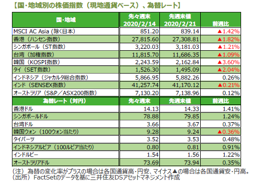 2.先週のアジア・オセアニア株式・リート市場
