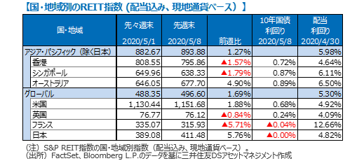主要国の株式市場は、欧米で新型コロナ対策の都市封鎖が徐々に緩和され、経済活動の再開が始まっていることなどを背景に概ね上昇しました。米国株式市場は、経済活動の再開期待や米中関係悪化懸念が和らいだことなどを好感して上昇しました。米国の失業率は戦後最悪の水準まで悪化しましたが、特に悪材料視されませんでした。NYダウは2.56%上昇しました。日本株式市場は、2日間の取引となりましたが、欧米での段階的に経済活動を再開させる動きや米国でナスダック総合指数が昨年末の水準を回復したことなどを好感して、日経平均株価は20,000円を回復し、2.85%上昇しました。欧州株式市場では、段階的に経済活動を再開させる動きや中国の貿易統計などが好感され、DAX指数は0.39%上昇、FTSE100指数は3.00%上昇しました。中国株式市場は、米中対立が和らいだことなどを好感して、上海総合指数は1.23%上昇した一方、香港ハンセン指数は1.68%下落しました。