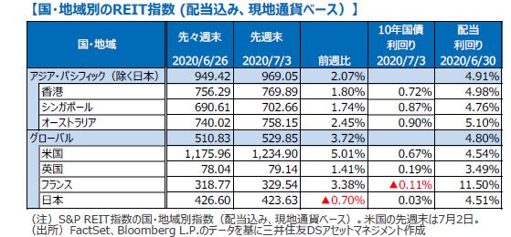 グローバル・リートは株式市場の上昇に連れる形で3.72%上昇しました。