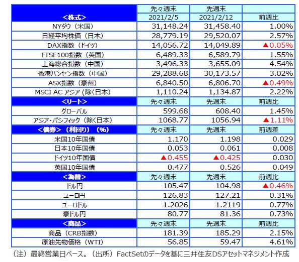 先週のマーケットの振り返り(2021/2/8-2/12)