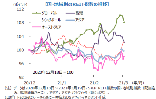グローバル・リートは、米国長期金利の上昇などを嫌気して0.96%下落しました。
