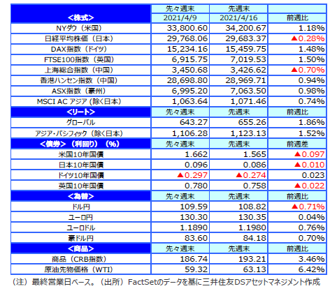 先週のマーケットの振り返り(2021/4/12-4/16)