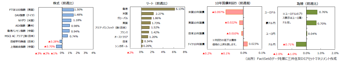 グローバル・リートは、米国での株式上昇や長期金利低下などを好感して1.86%上昇しました。