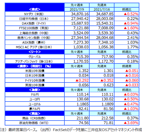 先週のマーケットの振り返り(2021/7/12-7/16)