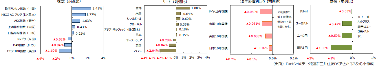 米国の10年物国債利回りは一時1.4%台前半まで上昇しましたが、米連邦準備制度理事会(FRB)のパウエル議長が早期の量的緩和の縮小を否定したことなどを受けて週間では0.051%低下しました。日本、ドイツ、英国の10年国債利回りも低下しました。