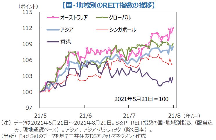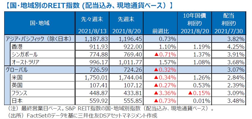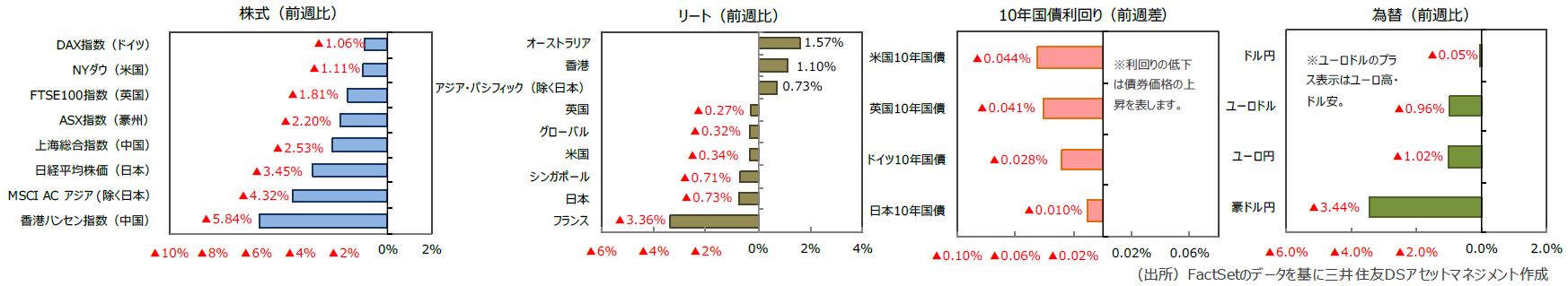 グローバル・リートは、世界的な株式市場下落の影響を受けましたが、長期金利の低下が追い風となり、下落率は0.32%にとどまりました。