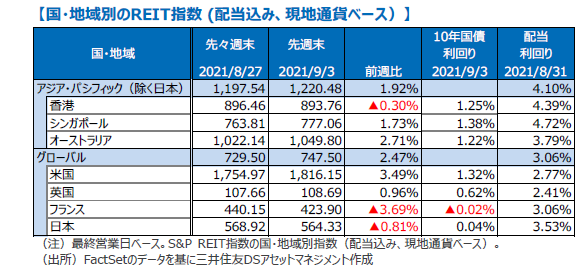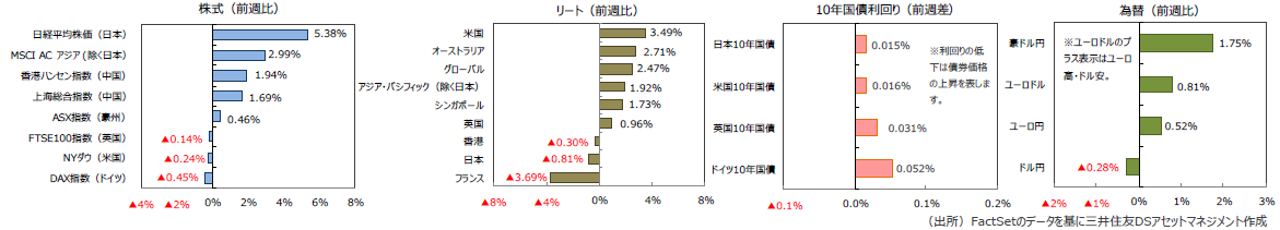 グローバル・リートは、株式市場の底堅い動きや長期金利の落ち着きを支えに堅調な展開となり、週間で2.47%上昇しました。