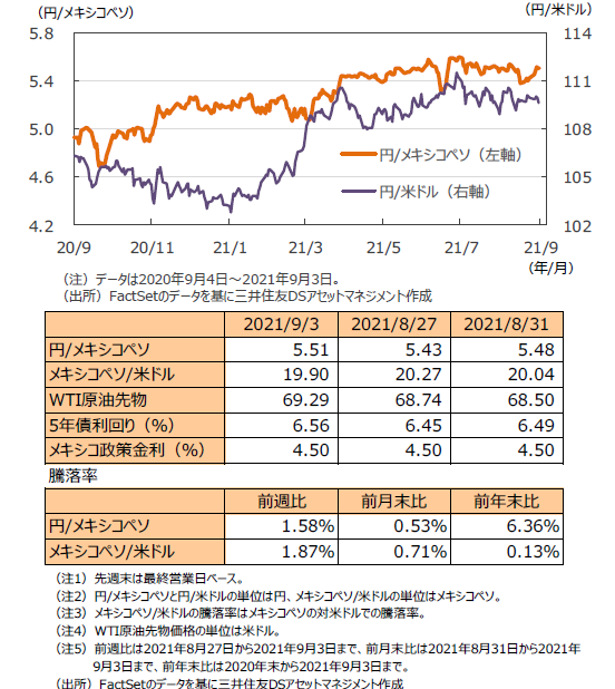 主要国の長期金利はやや上昇しました。米国の10年物国債利回りは、米連邦準備制度理事会(FRB)による年内のテーパリングが意識されるなか、週間では0.016%上昇しました。日本、ドイツ、英国の10年国債利回りも上昇しました。