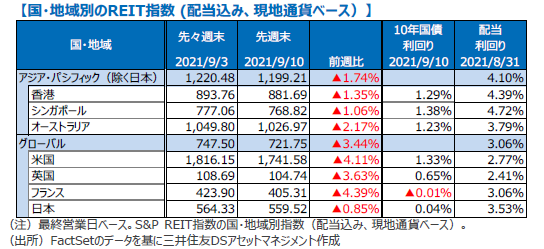 グローバル・リートは、米株式市場の下落に伴い軟調な展開となり、週間で3.44%下落しました。