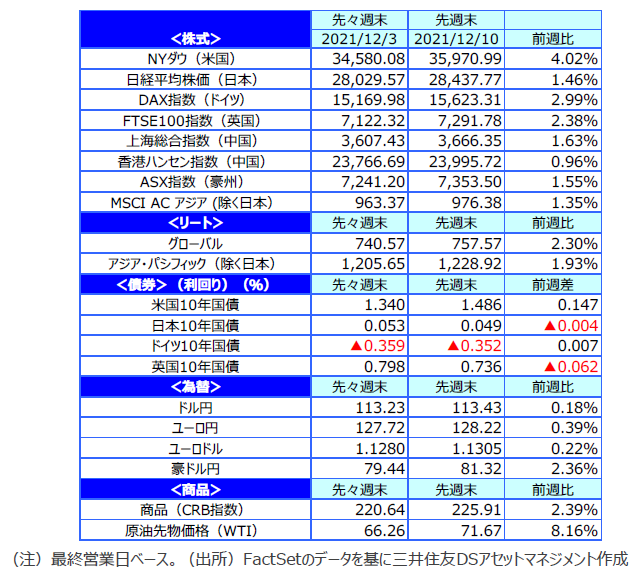 先週のマーケットの振り返り(2021/12/6-12/10)