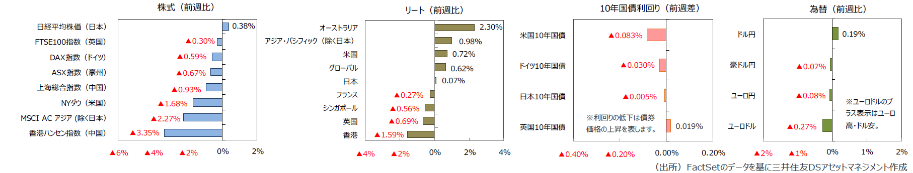 グローバル・リートは、長期金利が低下したことを受けて、週間で0.62%高となりました。