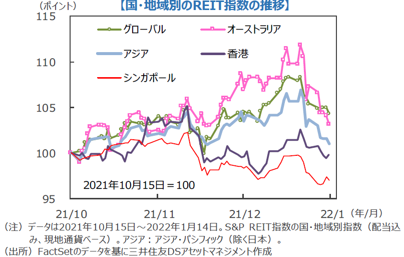 グローバル・リートは、米国を中心に株価が下落したことを受けて、0.97%安と続落しました。