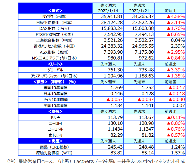 先週のマーケットの振り返り(2022/1/17-1/21)