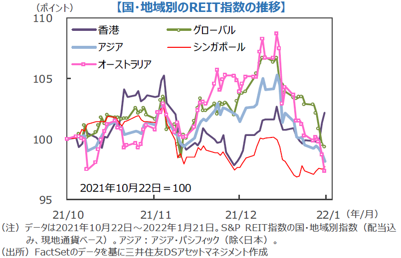 グローバル・リートは、米国を中心に株価が大きく下落したことを受けて、3.39%の大幅安となりました。