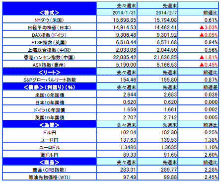 【ウィークリー No.296】先週のマーケットの振り返り(2014/2/3-2/7)