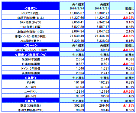 【ウィークリー No.302】先週のマーケットの振り返り(2014/3/17-3/21)