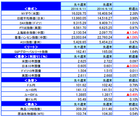 【ウィークリー No.306】先週のマーケットの振り返り(2014/4/14-4/18)