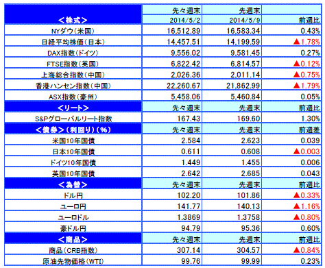 【ウィークリー No.309】先週のマーケットの振り返り(2014/5/5-5/9)