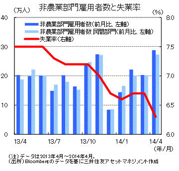 ☆5/7 【米国の雇用統計(4月)】~非農業部門雇用者数の増加は3カ月連続の20万人超~