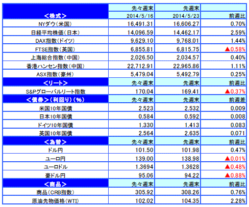 ホームマーケット週次・月次市場情報【ウィークリー No.311】先週のマーケットの振り返り(2014/5/19-5/23)/マーケット情報・レポート - 三井住友DSアセットマネジメント