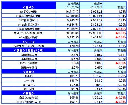 【ウィークリー No.313】先週のマーケットの振り返り(2014/6/2-6/6)