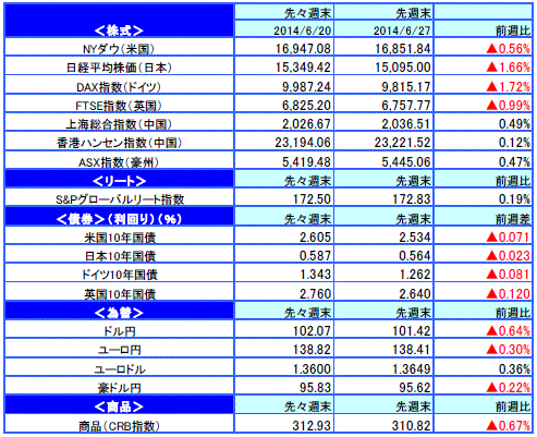 【ウィークリー No.316】先週のマーケットの振り返り(2014/6/23-6/27)