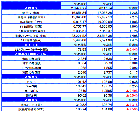 【ウィークリー No.317】先週のマーケットの振り返り(2014/6/30-7/4)