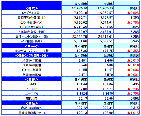 【ウィークリー No.320】先週のマーケットの振り返り(2014/7/21-7/25)
