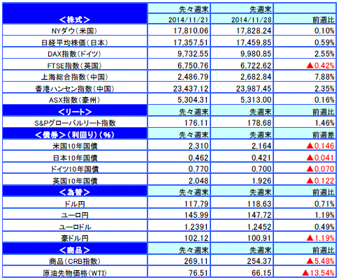 先週のマーケットの振り返り(2014/11/24-11/28)【ウィークリー】