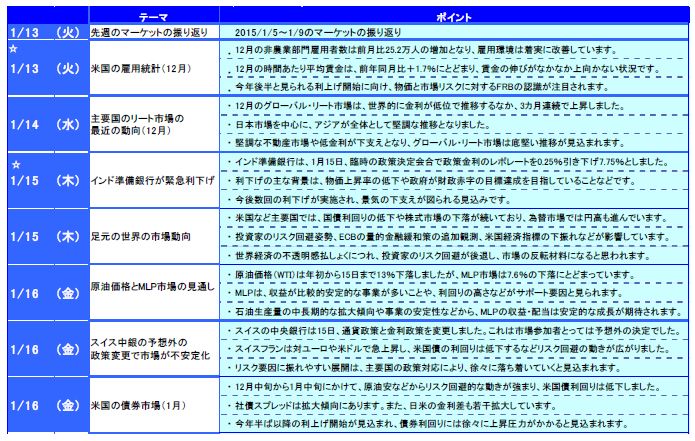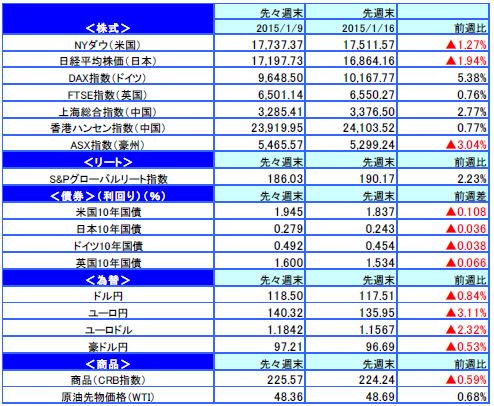 ホームマーケット週次・月次市場情報先週のマーケットの振り返り(2015/1/12-1/16)【ウィークリー】/マーケット情報・レポート - 三井住友DSアセットマネジメント