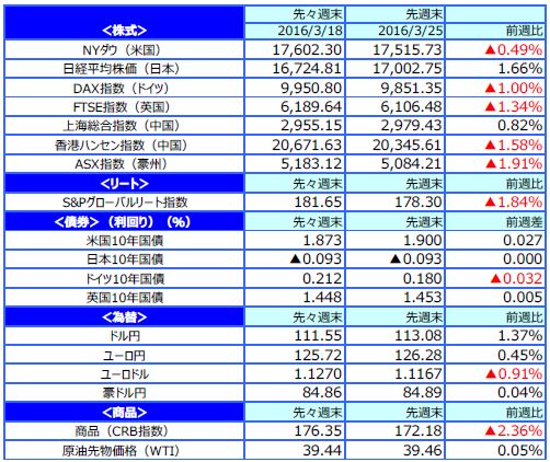 先週のマーケットの振り返り(2016/3/21-3/25)【ウィークリー】