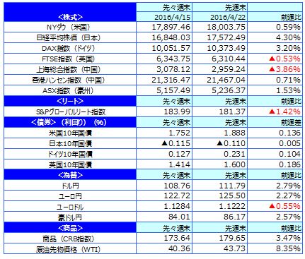 先週のマーケットの振り返り(2016/4/18-4/22)【ウィークリー】