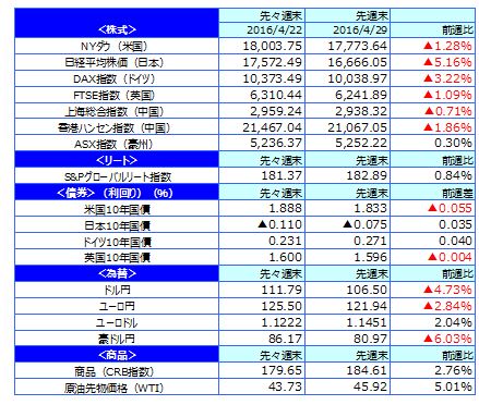 先週のマーケットの振り返り(2016/4/25-4/29)【ウィークリー】
