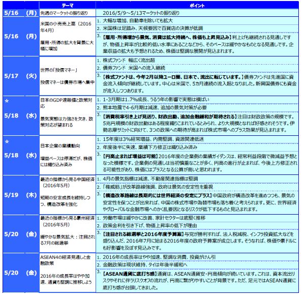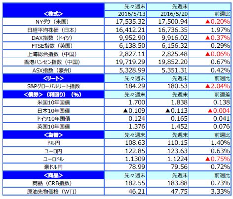 先週のマーケットの振り返り(2016/5/16-5/20)【ウィークリー】
