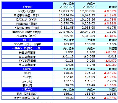 先週のマーケットの振り返り(2016/5/30-6/3)【ウィークリー】