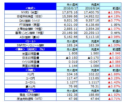 先週のマーケットの振り返り(2016/6/20-6/24)【ウィークリー】