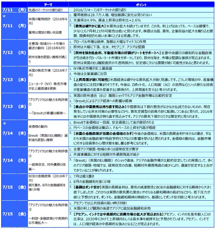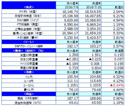 先週のマーケットの振り返り(2016/7/11-7/15)【ウィークリー】