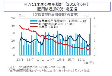 世界の株式市場は上昇しました。6月の米雇用統計で雇用者数が大幅に増加したことを好感した流れが続き、多くの市場で英国の欧州連合(EU)離脱選択以前の株価水準を回復しました。米国株式市場では、NYダウの終値が18,516ドルとなり、過去最高値を更新しました。欧州株式市場のドイツDAX指数は、10,066ポイントと、大幅に反発しました。中国株式市場では、上海総合指数が心理的な節目の3,000ポイントを上回り、約3か月ぶりの高値水準となりました。日本の株式市場では、参院選挙の与党大勝、円安進行や欧米株高が好感され、日経平均株価は9%を超える大幅上昇となりました。