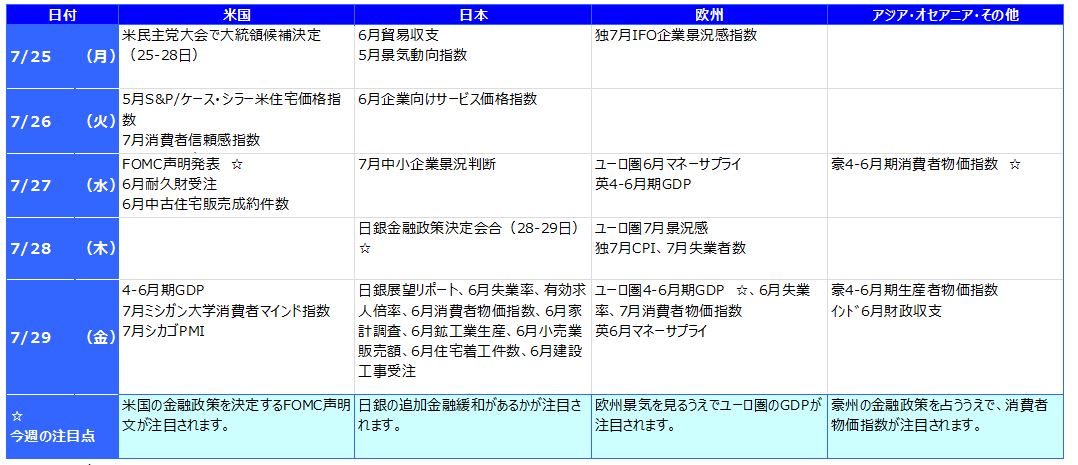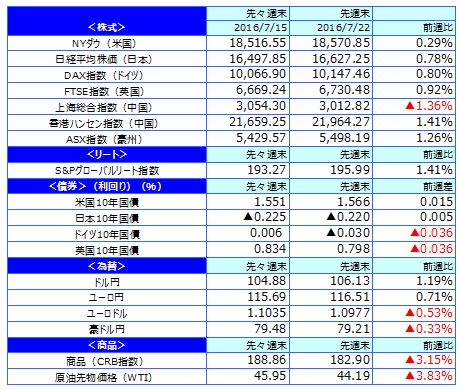 先週のマーケットの振り返り(2016/7/18-7/22)【ウィークリー】